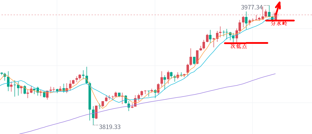 3,欧盘仍然很关键,这就看激进不激进。如果激进,多单止损就是3955,继续看欧盘上升。如果不激进,多单出局,欧盘观望,欧盘破高,美盘继续看,看4000上方。