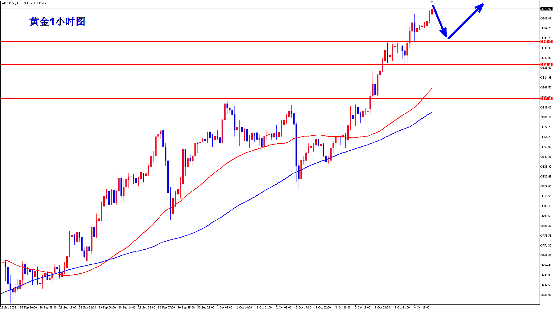 顺势轻飘飘,逆势乱糟糟,黄金当前新高不断,多头强势气势如虹,上涨不言顶,我们继续将黄金多头进行到底。黄金今天能否拿下4000?我们拭目以待!