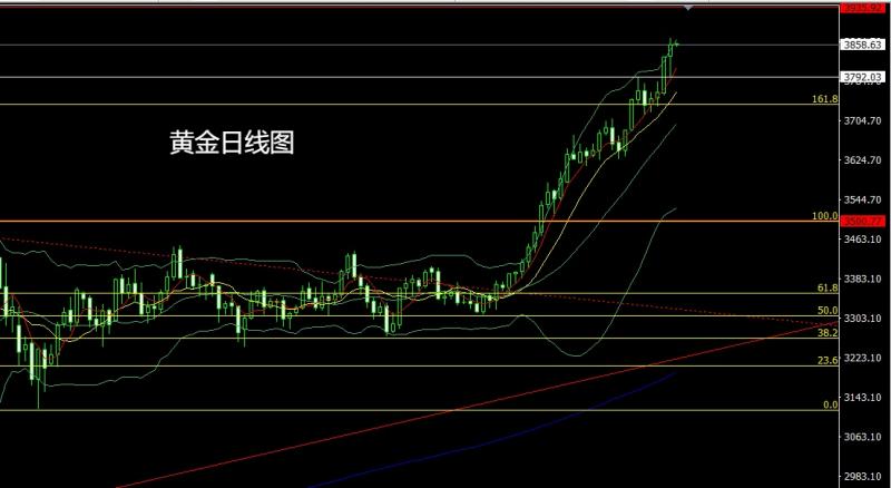昨日黄金市场早盘开盘在3834.7的位置后行情回踩3824.9的位置后行情就开始拉升过程,日线最高触及到了3872的历史新高后行情盘中出现获利了结回落过程,日线最低给到了3792.3的位置后行情受到日线级别5日均线和基本面利多因素的共同作用行情完成V型反转,日线最终收线在了3858.4 位置后日线以一根下影线极长的锤头形态收线,而这样的形态收尾后,今日的行情在技术上有一定的看多需求,点位上,下方3325和3322的多和上周3368-3370的多和3377和3385多和3563的多减仓后止损跟进在3650持有,今日先回落给出3832多止损3826,目标看3862和3872,破位的话看3885和3893和3902和3910附近。