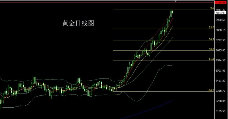 昨日黄金市场早盘开盘在3985.2的位置后行情小幅回踩3982.5的位置后行情延续拉升趋势上行,日线破位4000整数关口后行情加速拉升,日线最高触及到了4059.5的历史新高后行情整理,日线最终收线在了4041.4的位置后,日线以一根上影线较长的大阳线收线,而这样的形态收尾后,下方3325和3322的多和上周3368-3370的多和3377和3385多和3563的多减仓后止损跟进在3650持有,今日早盘先回落4037尝试空,止损4043,下方目标看4014和4000和3980支撑关口争夺,跌破的话行情将展开短期获利了结过程看3940和3920.