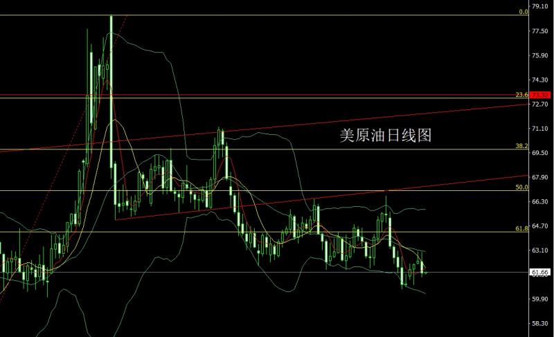 美原油市场昨日延续回落,早盘开盘在62.33的位置后行情先回落给出61.86的位置后行情强势拉升,日线最高触及到了62.96的位置后行情承压回落,日线最低给到了61.31的位置后行情整理,日线最终收线在了61.61的位置后日线以一根上影线很长的大阴线收线,而这样的形态收尾后,昨日62.8的空减仓后止损跟进在62.8持有,今日62.3空止损62.8下方目标看61.3和61和60.5-60.