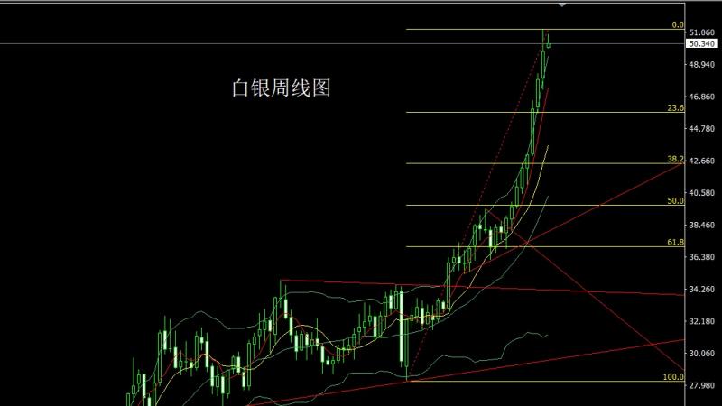 白银市场上周开盘在48.043的位置后行情先拉升给出48.766的位置后行情快速回落,周线最低给到了47.284的位置后行情强势拉升,周线最高触及到了51.266的位置后行情冲高回落,周线最终收线在了49.821的位置后行情以一根上影线稍长于下影线的大阳线收线,而这样的形态收尾后,本周市场依旧有技术看多需求,点位上,下方37.8的多和38.8的多减仓后止损跟进在44持有。44.6的多减仓后止损跟进在45持有,本周高开在50.8空止损51.1目标看49.6和49.2和49和48.7离场准备多