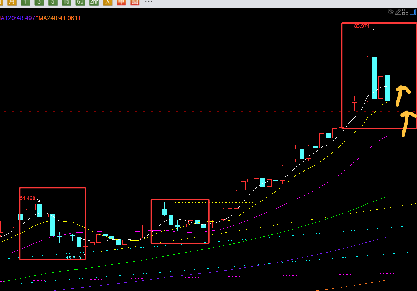 白银方面:今日先留意日线10均线71附近收盘能否稳住,若稳不住,下一个支撑就是中轨65-66,刚好也是最后一波单边涨幅回踩50%位置,10月中旬那一波回测也是回踩了50%位置;所以,要做好心理准备,如果今晚再打压一次,可能就会试探中轨或刺破些,然后再通过盘整慢慢企稳,最终也依然会继续走单边强势上冲;芝商所修改规则,提升保证金,虽手段不爽,但作用还是明显,强行把看涨情绪给瞬间浇灭,逼出了不少投机者持仓多头获利了结;很多人会担忧重蹈1980年的行情走势,当年连续四次提升保证金,硬生生的把当年牛市白银直接转熊,但这次不用担心,不会改变牛市行情,因为当年走熊,是因为后面美联储步入加息周期所最终影响,而今年是处于降息周期内,不要过多的杞人忧天,控制好仓位,做好风控即可,剩下的就耐心等市场走几天就清楚了;今晚短线支撑71-70,阻力小时线中轨73.8,同样若能先突破站上中轨,那么会缓解打压,走一个区间内整理;