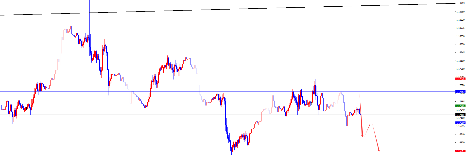 欧美1.1750-60区间空持有,关注1.1700下破,下破后关注1.1650