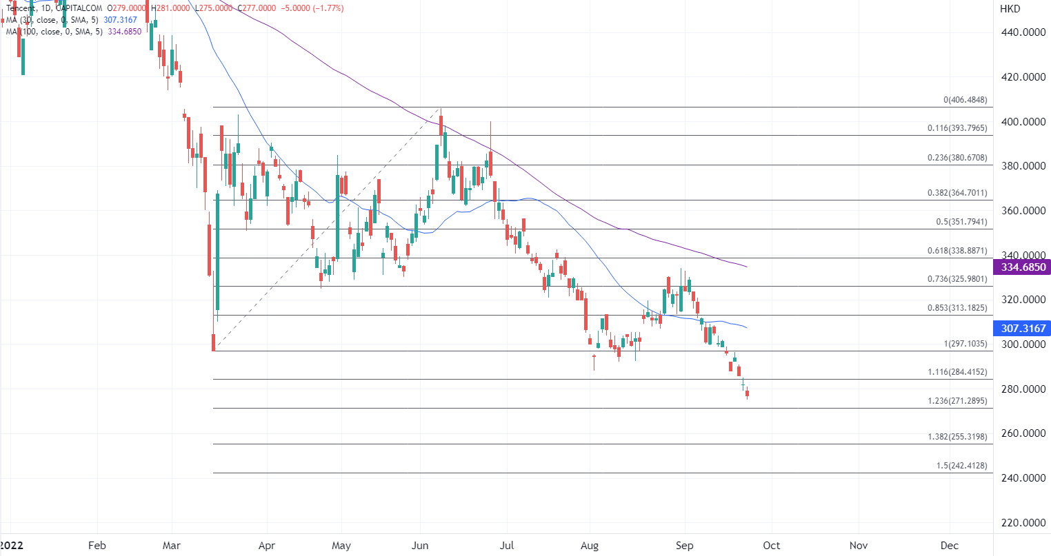 ATFX港股:科网股拖累大市探逾十年低位,腾讯跌至2018年新低