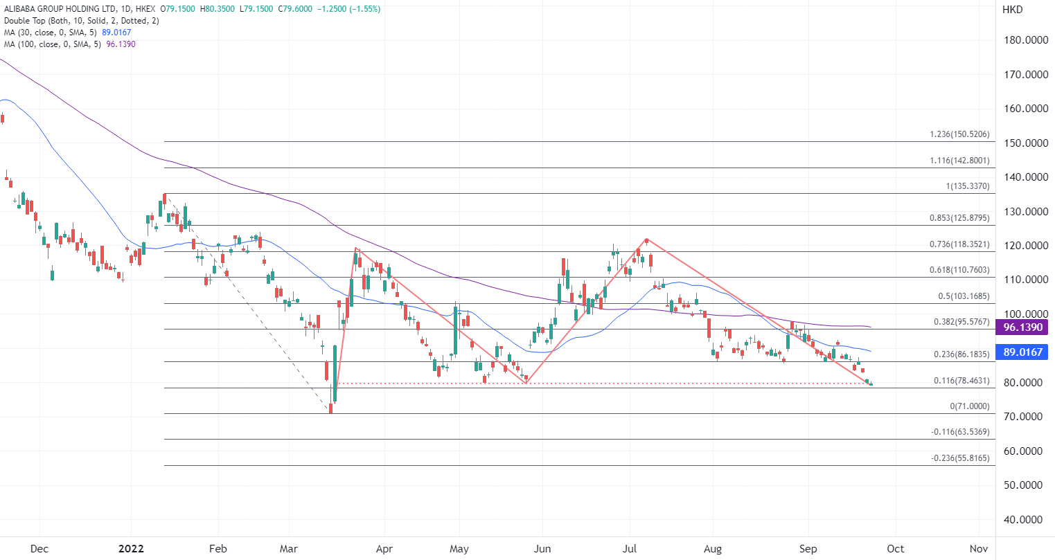 阿里巴巴股价日内则回调3月份以来的低位,周线录得两连跌,为今年4月份以来首次,如果日内确认跌破5月份的低位区间,则将看向3月低位在71港元作为关键支撑。