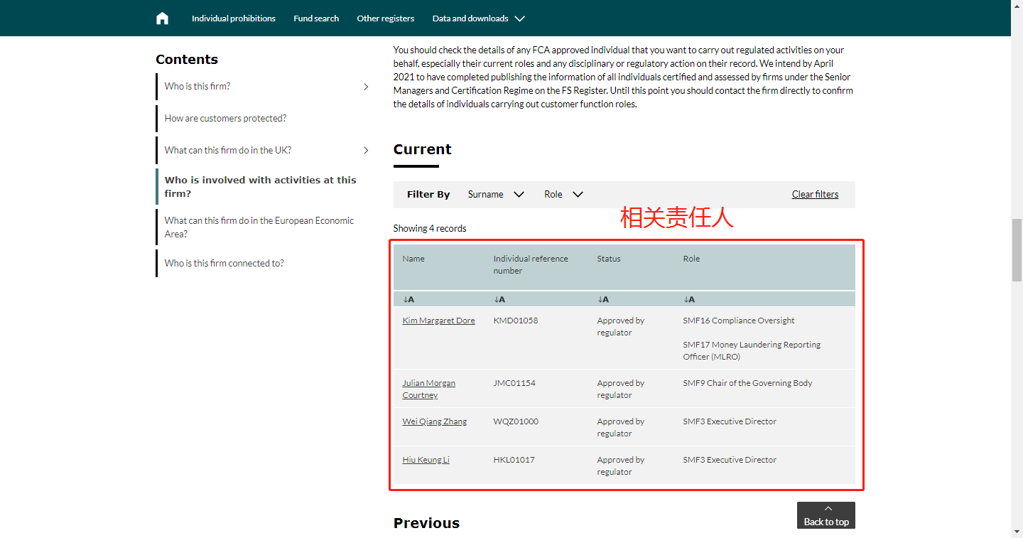 (4)该经纪商相关责任人都有谁?(Who is involved with activities at this firm?)