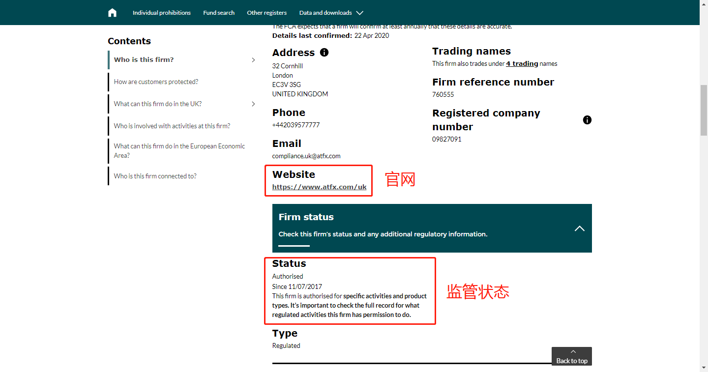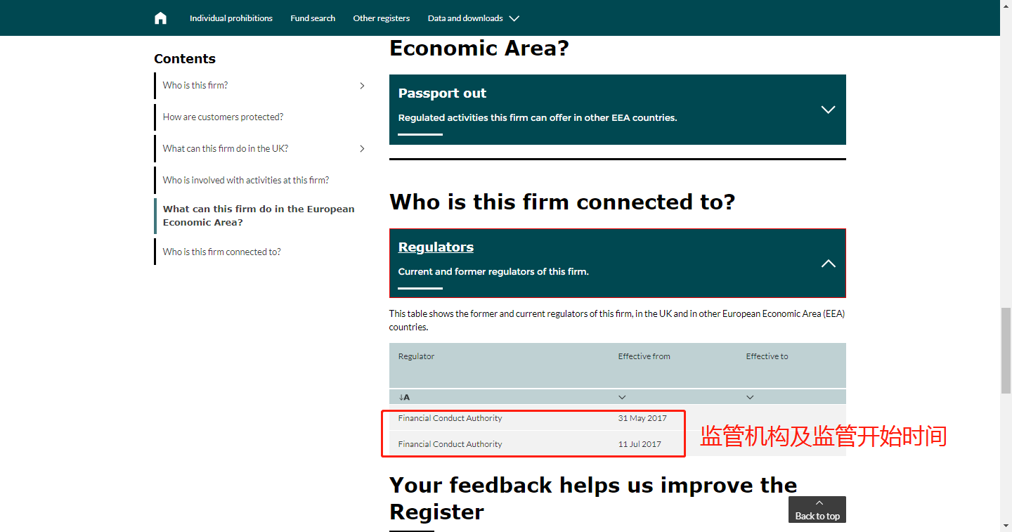 Status,监管状态,极为重要,Authorised,代表监管中,Since 11/07/2017,代表监管开始时间(至今)。