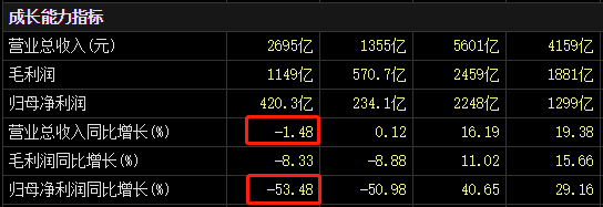 业绩角度看,腾讯控股尚未走出困境。今年上半年,营收总额2695亿元,规模庞大,但增速为负的1.48%,处于萎缩态势。归属母公司净利润420.3亿元,利润可观,但同比去年减少53.48%,颓势尽显。