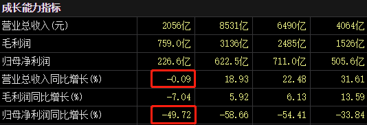 据2023财年一季度合并利润表,阿里巴巴集团实现营收总额2,055.6亿元,相比去年同期2057.4亿元,降幅不足1%,基本持平。归属母公司净利润226.59亿元,相比去年同期450.68亿元,下降49.72%,接近腰斩。整体来看,阿里巴巴集团营收原地踏步,利润腰斩,成长性不足,颓势显著,与腾讯控股的业绩面表现大体相同。