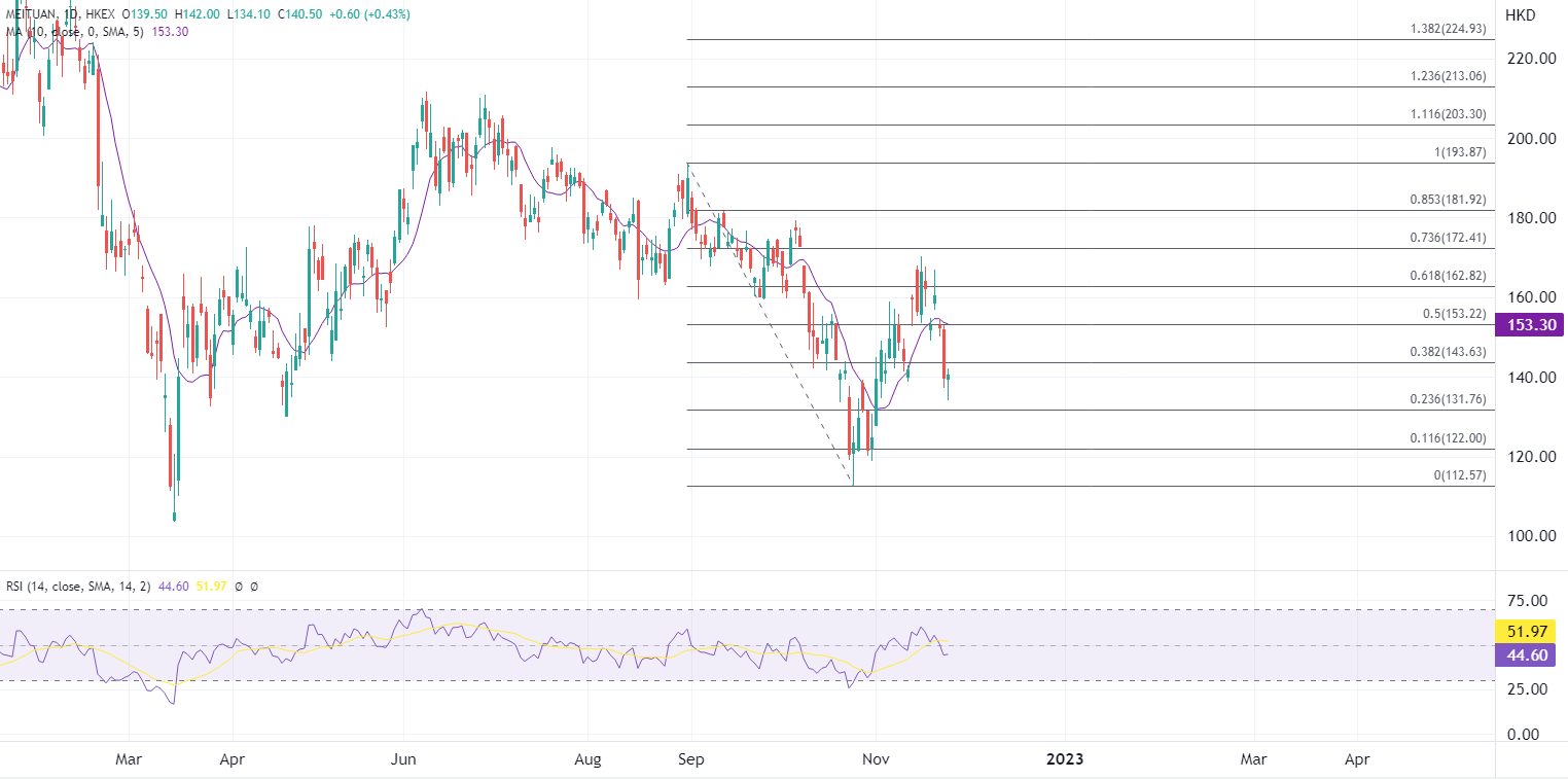 ATFX指出,自遭到腾讯减持后美团股价以受压为主,本周跟随港股加大向下,本周前两个交易日累计跌超13%,但预计该消息更多的是短期利空影响,对美团长期基本面并无大影响,且对股价来说也是传闻落地的释放。
