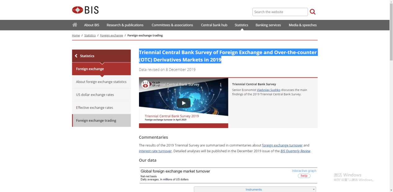 通过点击菜单栏中的“statistics”选项,在下拉菜单中找到“Foreign exchange”按钮并点击,新出现的右侧菜单中有“Foreign exchange trading”选项,点击进入。