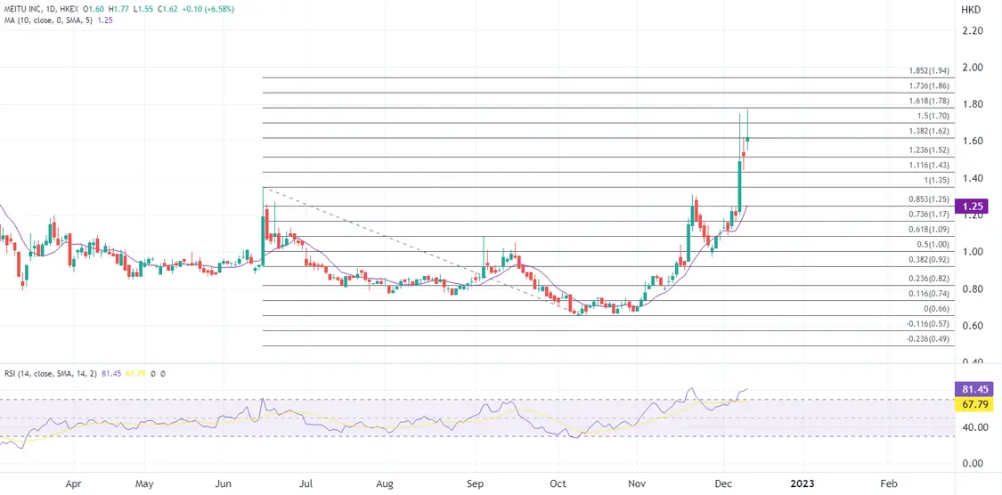 12月7日美图一度录得超24%的单日涨幅,盘中一度暴涨45%,创下近一年来新高,本周以来已经累计上涨超过40%,势将创下2021年2月以来的最佳单周表现。