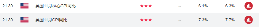 ATFX汇评:今日21:30,美国劳工部统计局将公布11月CPI相关数据。其中,综合CPI同比增速的前值为7.7%,预期值7.3%,预期降低;核心CPI同比增速的前值为6.3%,预期值6.1%,预期同样降低。综合CPI增速的拐点出现在7月份,至今已维持下降态势四个月时间。核心CPI增速拐点在上月刚刚出现,下降态势尚不稳固,有一定概率出现高于前值的情况。
