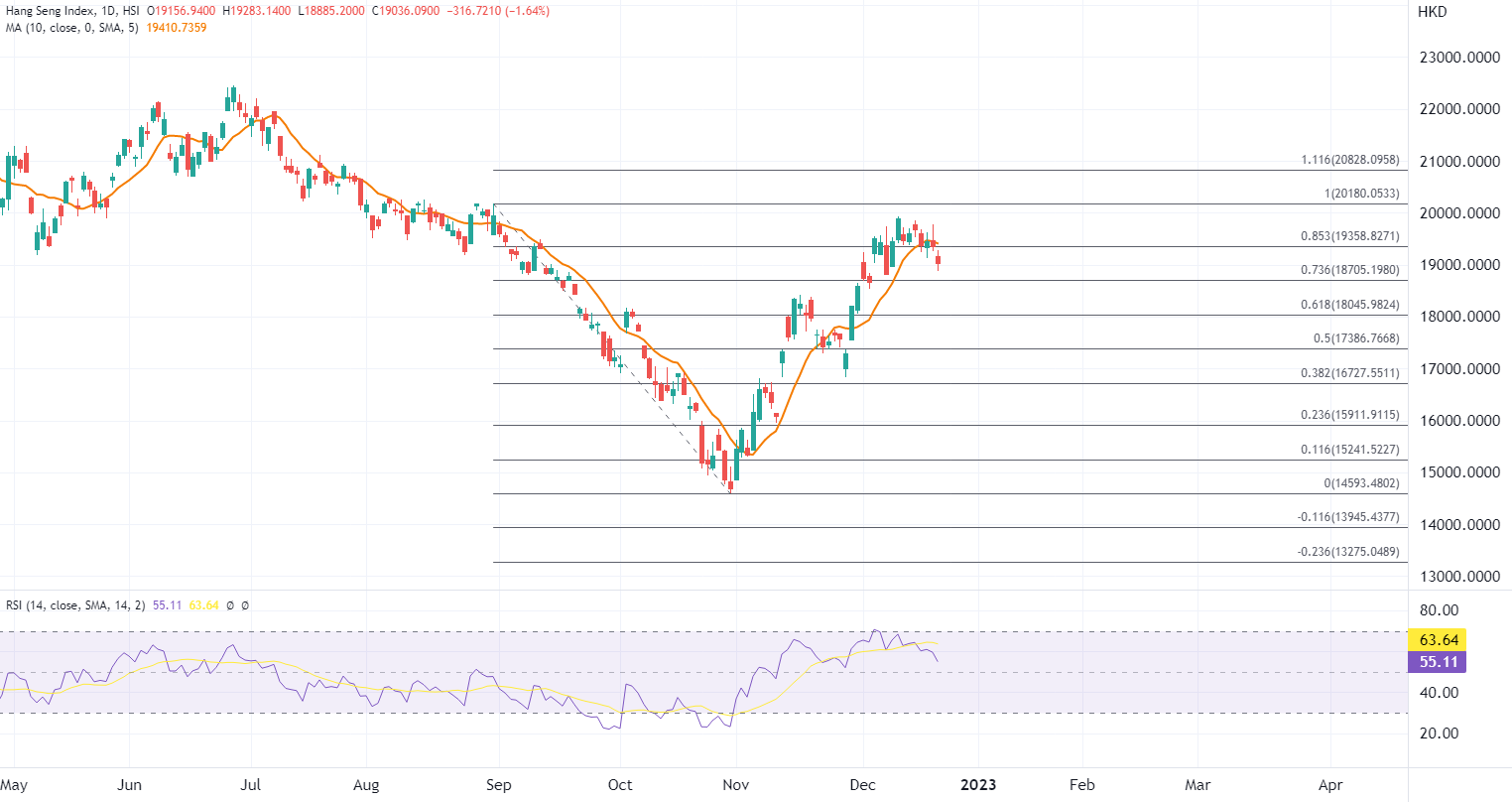 ATFX分析,恒指连续两日下行确认自近期高位回落的趋势,加上本周临近圣诞假期,大市向上动力不足,技术上日图10均线转为阻力后,下试19000点关口,预计会在该位附近形成震荡,期间留意下测18705甚至是如果外围走弱会影响跌势扩大向18000关口靠近。