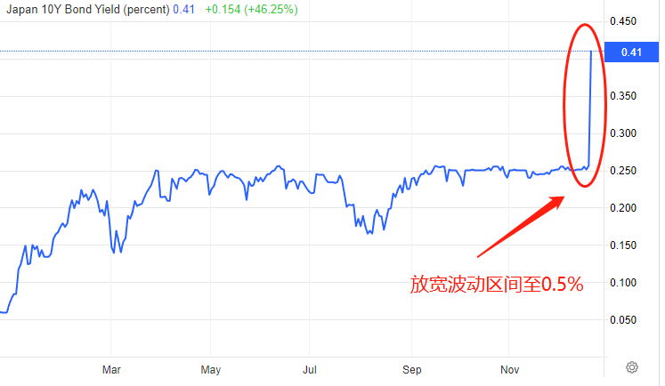 放宽10年期国债收益率的波动幅度,可以更真实的观察到债券市场对货币政策的反应。日本央行利率决议结果公布后,十年期债券收益率“直线式”上涨:开盘价0.24%,上午时段就触及0.469%的波动上限。这表明,市场对于日本央行放弃当前超级宽松货币政策的预期非常强烈。