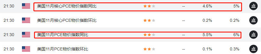 ATFX汇评:今日21:30,美国经济分析局将公布11月份PCE物价指数同比数据,前值为6%,预期5.5%,由于该数据已经连续四个月增速下降,所以公布值符合预期的概率较高。11月核心PCE物价指数同比数据同一时间公布,前值为5%,预期值4.65%,该数据在10月份才由增转降,不够稳固,有可能会超预期。