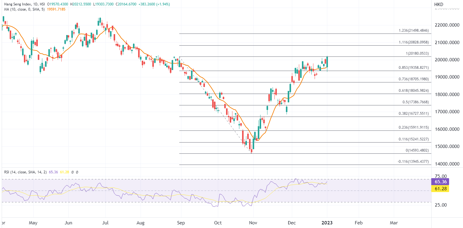 ATFX港股:2023首个交易日,恒指突破两万点大关