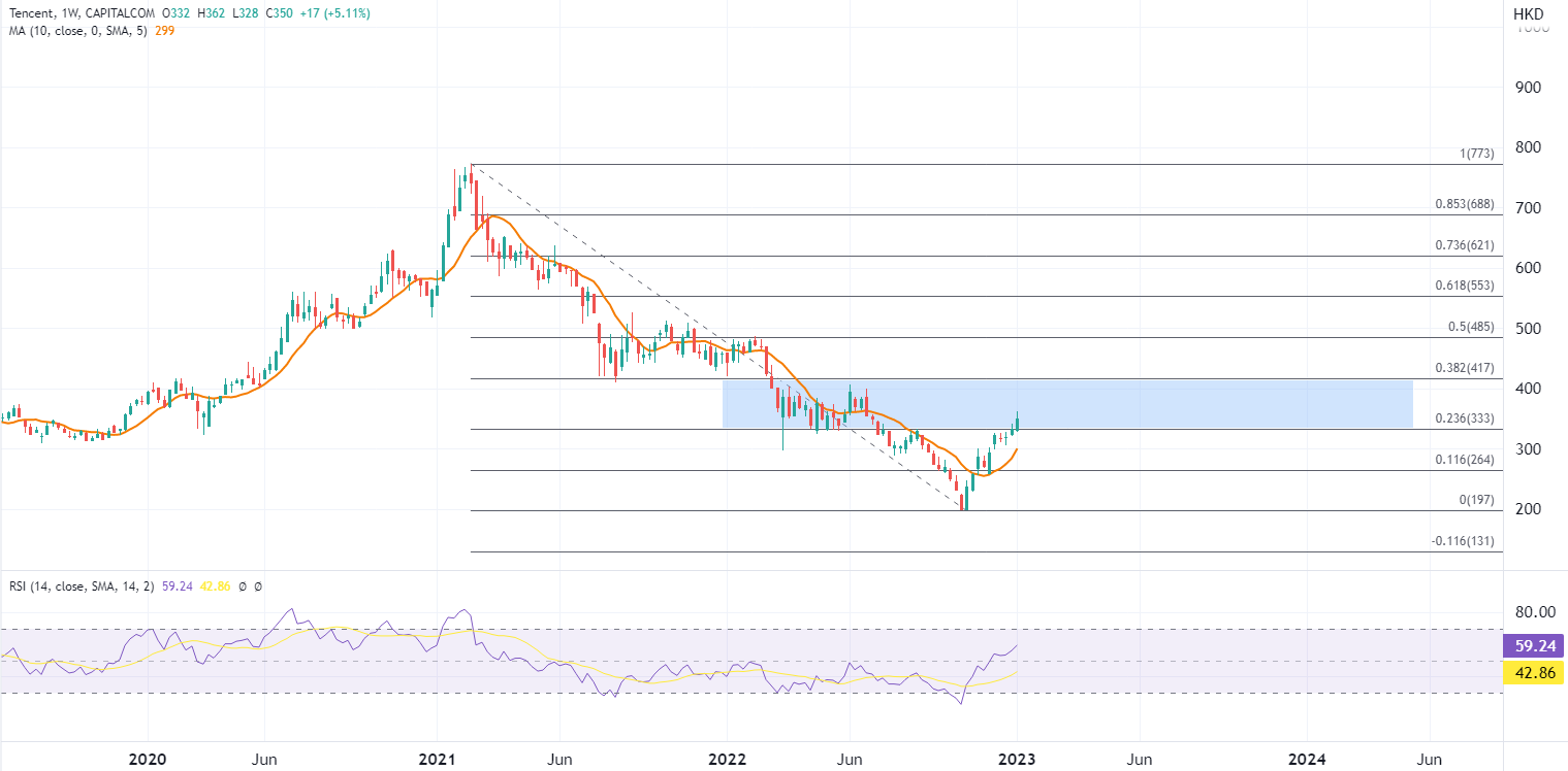 ATFX指出,从去年资金走向看,即便科技股曾遭遇重挫,但投资者依然对部分明星科技股依然青睐,当前港股氛围已经显著升温,股王腾讯去年第三季度业绩改善和以及持续进行密集的股票回购,都共同提升投资者对腾讯长期前景的信心。