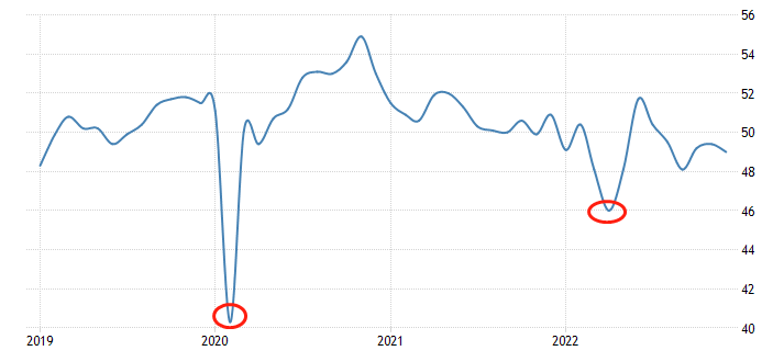 图1,制造业PMI,2019年1月至今数据曲线-ATFX