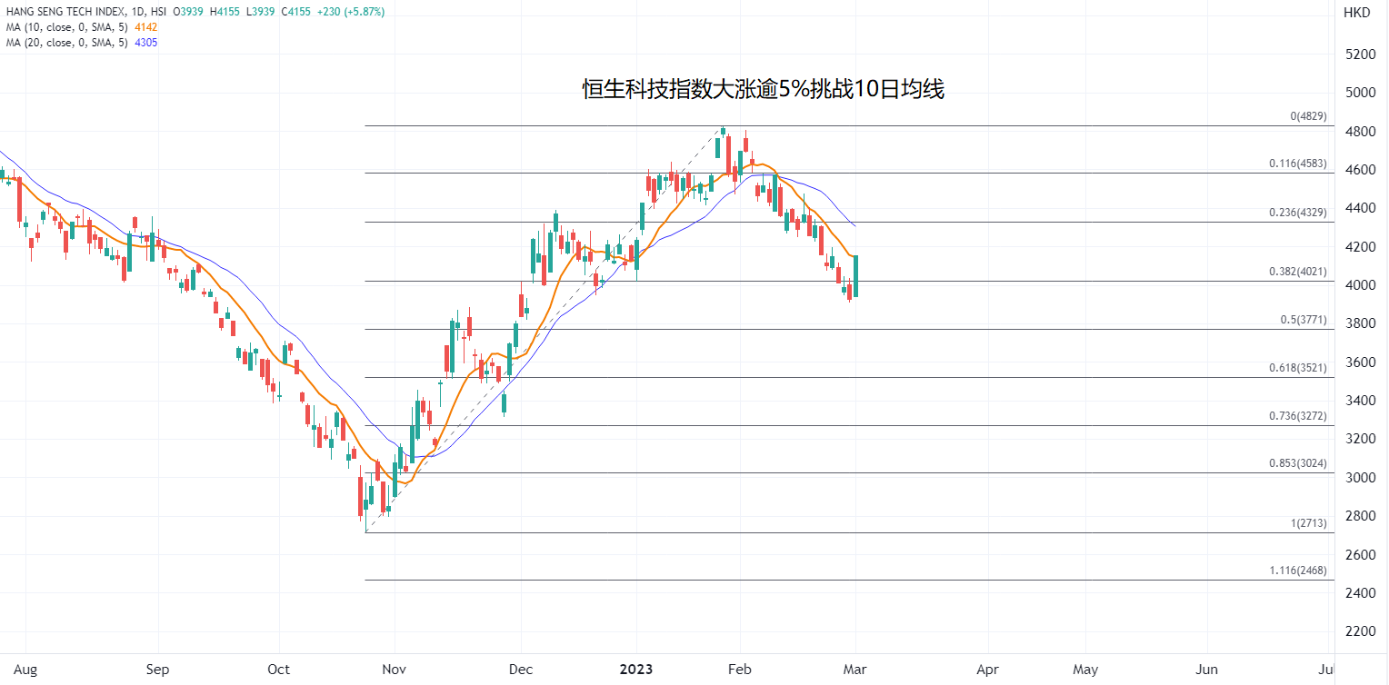 ATFX指出,内地经济活动确认加速回升是日内港股大涨的直接触发因素,接下来可能会有更多的经济数据反映经济景气度改善,3月份市场期待的关键行情莫过于即将举行两会,预计政策会继续强调促经济增长,看是否有更加明朗的政策提出,重新成为市场反弹的主要动力,资金可能重新大举入场带动趋势的反弹。