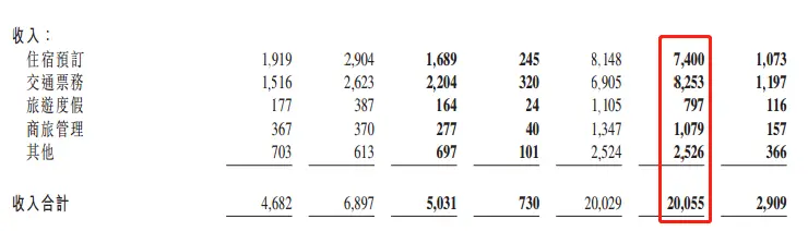 年度财报来,住宿预订和交通票务仍是携程集团最核心的两大业务,分别贡献营收74亿元和82.53亿元人民币,占营收总额200.55亿人民币的36.9%和26.19%,累计占比63.1%。比较2022年和2021年的数据可以发现,除了交通票务的营收有比较显著的增长以外,其他四大板块儿的营收或者原地踏步,或者明显下降。原因在于2022年的疫情防控措施整体上要比2021年更加严格,12月份旅行限制解除的有利影响,无法完全覆盖前12个月造成的业绩收缩压力。