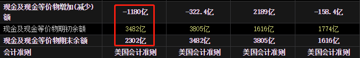 美国银行2022年财报显示:现金及现金等价物减少1180亿美元,期末现金流余额为2302亿美元,一年时间里现金流减少比例高达34%,有可能引发现金流危机,需要警惕。