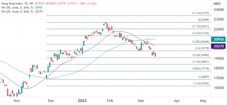 ATFX港股:昨日弹升376点后,今日恒指低开171点,盘中一度转涨但未能延续,倒跌再创今年的新低,午后跌幅超过2%,除了公用分类指数外全线走低,金融分类指数以逾3%的跌幅领跌。