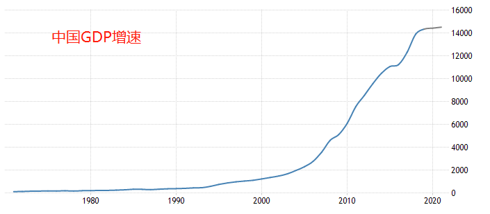 自1990年以来,日本的GDP总值以5万亿美元为中轴,相对规律的上下波动。当然,话说的难听一点:1990年至今,日本的GDP一直原地踏步,没有丝毫起色。可以拿中国的GDP总值做比较: