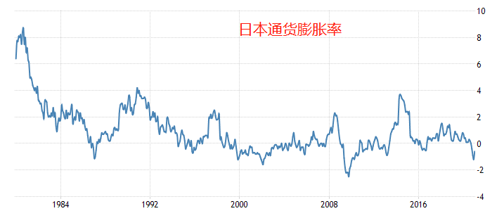 经济的高速扩张以来三个因素:消费、投资、进出口。日本经济在过去三十年止步不前,一定是这三个因素当中的某一个或者某几个出现了问题。窥一斑可知全豹,我们就以消费为例来进行观察。通货膨胀率(CPI)衡量的是一段时间内某国国内所有商品的平均价格变化情况。当CPI上涨时,代表消费热情高涨,经济处于复苏阶段;当CPI下降时,代表消费低迷,经济处于衰退阶段。