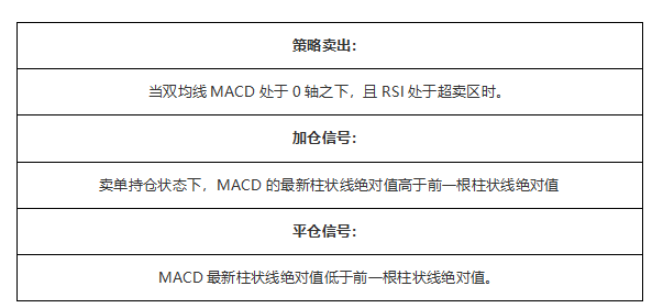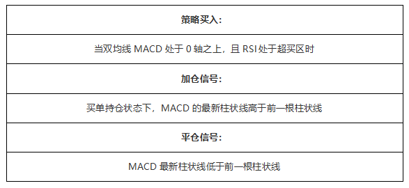 该买卖策略基于趋势性思维搭建,当出现持续性单边行情时,能够获得较为充足的利润。当出现前期涨跌较为剧烈,后期快速V型反转的行情时,也能够起到及时平仓,避免浮盈变浮亏的作用。但是,由于RSI达到超买或者超卖时,行情已经运行了一定时间,所以入场点往往不具有明显优势。另外,平仓信号设定的非常敏感,可能会频繁出现过早平仓的问题。