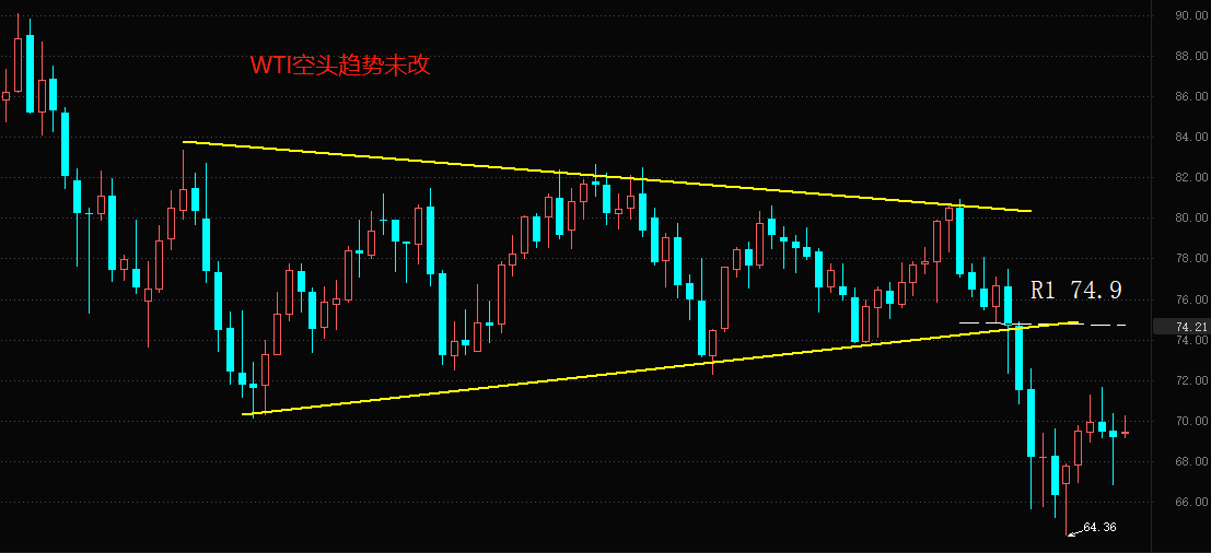 技术角度看,WTI仍处于空头趋势之中。3月20日~3月23日的反弹没有触及阻力位R1 74.9,仅仅形成了一个反弹回踩的动作,预示未来将出现更大幅度的下跌。天然气和石油都属于能源产品,两者价格走势往往共振。2月份天然气价格上涨3.43%,3月份大跌17.66%,微幅反弹和剧烈下跌的特征也出现在天然气的走势当中。我们认为,只要俄乌冲突没有出现局势升级的情况,并且中东的主要产油国没有出现内乱,国际能源产品的价格将随着经济增长预期的衰弱而不断下行。