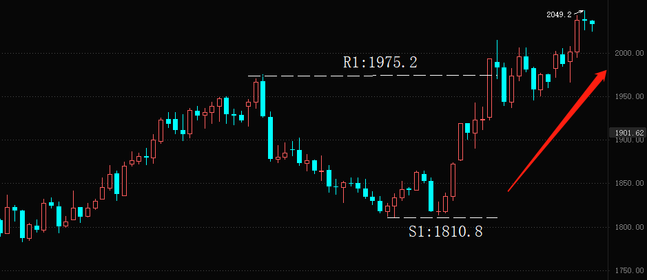 ATFX国际:黄金的典型特征是具有避险属性,当市场预期全球经济即将进入衰退阶段时,黄金价格会持续走强。黄金常被看做逆周期的资产,宏观经济越糟糕,黄金越是受到市场追捧。本周一收盘,黄金报价2001.7美元/盎司,正式站上2000美元关口。随后的两个交易日,金价最高触及2048.2美元,并保持收盘价2000美元以上的强势状态。黄金的最高价出现在2020年8月份,为2089.2美元/盎司。本月黄金最高价相比历史最高价仅差距41美元,预计近两周黄金即可刷新历史最高纪录。
