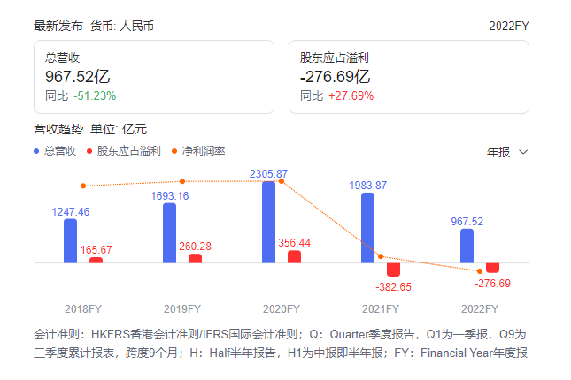 融创中国分别在去年12月、今年3月底完成发布2021年年度业绩、2022年中期及全年业绩,上市规则规定的所有财务业绩均完成刊发。财报显示,截至2022年底,融创资产总额约人民币10902亿元,2022年收入967.5亿元。截至2022年底,融创的债务总额约为人民币2,984.2亿元。