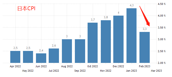 3月21日开始,日本十年期国债收益率开始上升,今日最新值为0.479%,接近YCC政策规定的上限0.5%,意味着金融市场看好日本央行加息的资金又多了起来。并且,日本国债的长短期收益率倒挂临界期缩短为3个月,暗示日本央行极有可能将会在上半年开启加息操作。债券市场的预期呈现出短线特征,在日本CPI增速已经在2月份回落的情况下,日本央行抛弃YCC政策的可能性并不高。