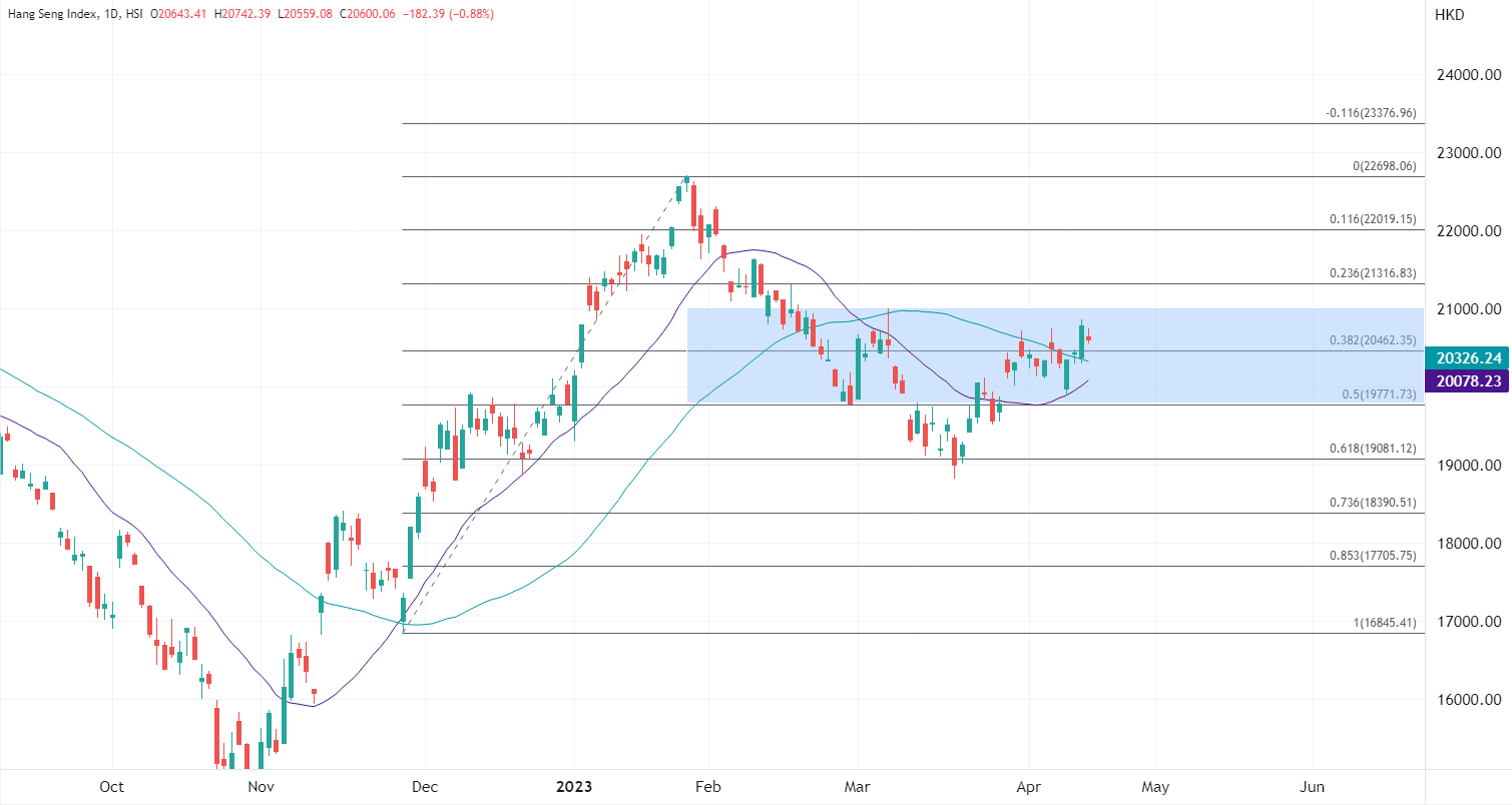 ATFX指,内地GDP表现超预期但对港股提振有限,因部分利好已经提前反映,部分也在于技术性阻力。今日数据落定后港股从近两个月回落,虽然短线未能跟随数据延续升势,但中国经济开局良好却可以为港股带来关键的信心支撑。恒指连续两日测试自上周以来的关键阻力区间上方但再次遇阻,表明近两周的区间模式不改,下方继续以均线作为关键支撑,捍卫20000点关口。