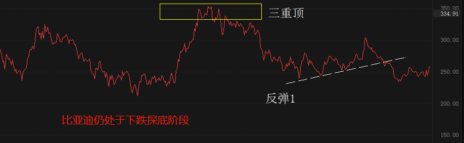 纯技术角度看,比亚迪的股价在2022年6月和7月形成三重顶,终结了此前的上涨趋势。2022年7月下旬至今,比亚迪股价一直维持下跌走势,期间出现过一次如图所示的反弹。最近两周的走势有开启第二轮反弹的可能性,但由于涨幅非常有限,所以尚无法给出确定性结论。汽车整车板块的整体走势仍偏空头,预计“第二轮反弹”的可能性较低,预计将继续保持中长线偏空的观点。