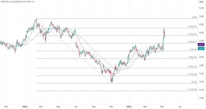 日内工商银行(01398)股价在板块中领跌,连续两日的下跌进一步脱离高位,当前以4.4至4.3为初步支撑,跌破该范围意味着确认回到此前逾一个月的盘整区间,市场需要更多基本面的利好重新拉动。但如果维持在上述支撑上方,则保留再度反弹的倾向,4.6为初步阻力位,更高区间看4.7至4.8。