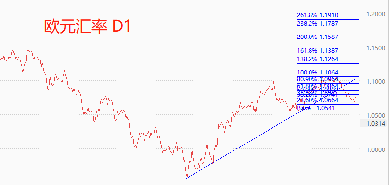 澳大利亚一季度CPI增速为7%,低于去年四季度的7.8%,高通胀问题迎来拐点。5月份的利率决议会议,澳洲联储加息25基点,维持紧缩货币政策。4月份的利率决议曾决定暂停加息,5月份重启加息,澳洲联储给出的理由是:4月份强劲的经济数据——劳动力市场吃紧,通胀压力显著——同时全球银行市场的压力有所缓解。澳大利亚最新失业率3.7%,充裕充分就业状态,而旺盛的劳动力需求将会推高核心CPI增速,只不过这种推动作用不会立刻显现,而是具有滞后性。美联储的决策思路与澳洲联储基本相同,如果非农就业报告一直表现良好,美联储会因为担忧核心通胀率升高而延续加息政策。技术角度看,澳元汇率回调至0.618分位,有反弹需求。