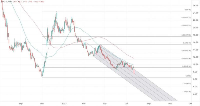 碧桂园服务(06098)今早低开4.6%后,盘中大跌超16%,股价创2022年11月以来新低,为表现最差蓝筹,龙湖集团(00960)以超过9%的跌幅紧随其后,碧桂园(02007)跌逾7%。碧桂园服务股价自去年12月的高位以来已经累计回落近70%,大幅跑输行业平均表现。