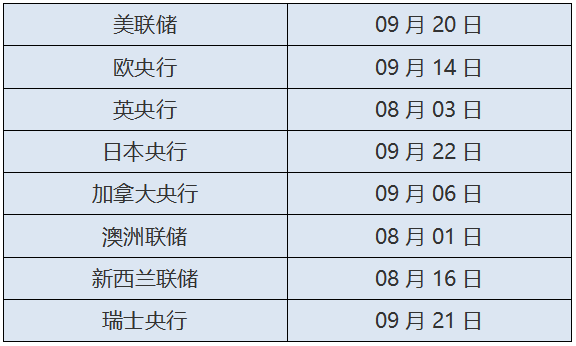 8月份,美联储和欧央行没有利率决议,月度权重较低。英国央行将于本周四公布利率决议结果,加息25基点概率极高。英国面临主要发达经济体当中最高的通胀率,英央行加息的紧迫性和确定性居各国首位。