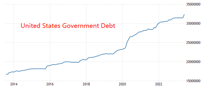 美国政府债务正迅速扩张,债务总规模债务从2023年5月的31.464457万亿美元增加到6月的32.332274万亿美元,超过了已经被废止的债务上限31.4万亿美元。债务总额不断升高、债券收益率也在同步走高,意味着美国联邦政府需要偿还的利息,这一点有损于美国经济增长潜力。