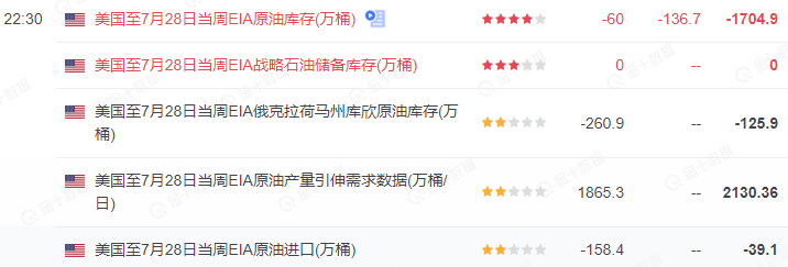 据美国能源信息署,至7月28日当周EIA原油库存,减少-1704.9万桶,前值为减少60万桶,预期值减少136.7万桶;至7月28日当周EIA俄克拉荷马州库欣原油库存,减少125.9万桶,前值为减少26.9万桶;至7月28日当周EIA战略石油储备库存,无变化。综合来看,库存总量大幅下降,细分类目降幅也较为明显,原油供应端偏紧的特征明显。