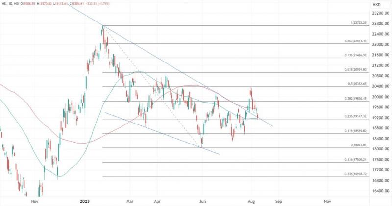 ATFX港股:地产股和科技股集体拖累,恒指向万九关口靠近