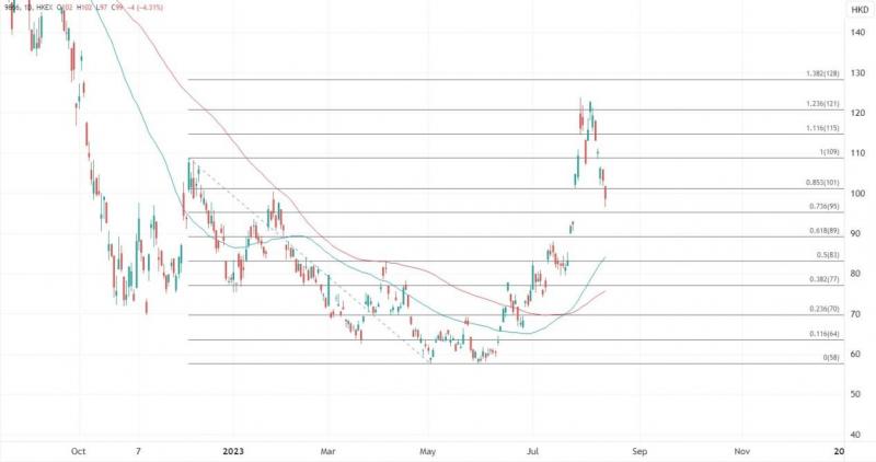 上周蔚来汽车(09866)已经录得单周累计15.8%的跌幅,其业绩需等到9月份才公布,所以期间留意跟随行业氛围波动,股价在跌破100港元后跌压跟进,接下来看80港元的目标。