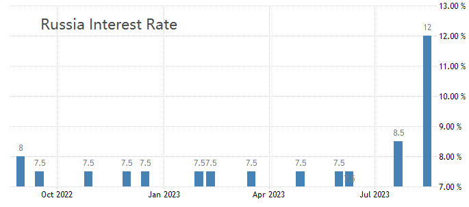 ATFX汇评:俄罗斯央行加息350基点,基准利率已经高达12%