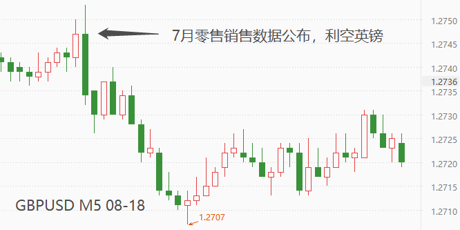 ATFX汇评:7月季调后零售销售年率,最新值-3.2%,前值-1.6%,降幅扩大;7月季调后核心零售销售年率,最新值-3.4%,前值-1.6%,降幅扩大。零售销售综合衡量除服务业外包括所有主要从事零售业务的商店以现金或信用形式销售的商品价值总额,降幅扩大意味着实物商品需求不足。数据公布后,GBPUSD短线下挫,5分钟内从高点1.2753跌至低点1.2732,跌幅21点。7月14日以来,随着美元指数的上涨,GBPUSD进入回调波段。但是,从长周期来看,美联储加息政策接近尾声,失去预期支撑的美指大概率走弱,GBPUSD将反向受益。