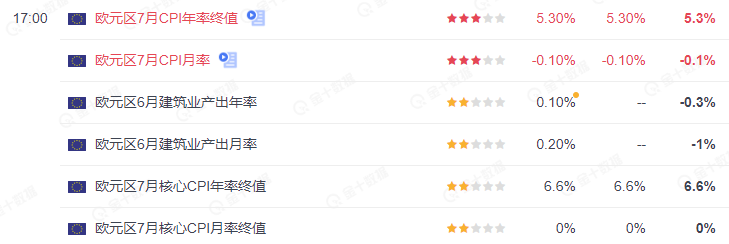 ATFX汇评:欧元区7月CPI年率终值5.3%,与前值和预期值持平;7月核心CPI年率终值6.6%,与前值和预期值持平。7月数据之前,欧元区名义CPI年率已经连续四个月下降,7月数据持平,意味着通胀率已经触底,8月份数据可能有所反弹。