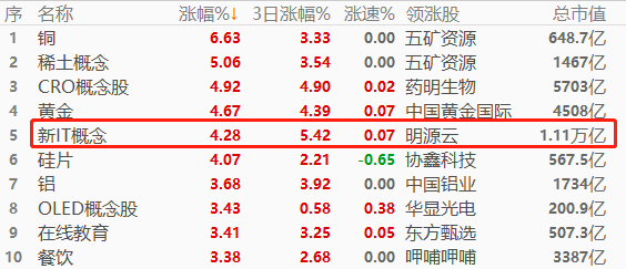 跌幅版前三的板块分别为大基建、新能源、原材料,跌幅介于1.69%~2.88%之间。