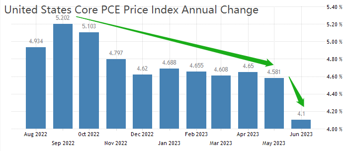 本周四20:30,美国商务部将公布7月核心PCE物价指数年率,前值为4.1%,预期值4.2%,预期将小幅走高。PCE数据是美联储决策的重要参考指标,其与CPI数据类似,都用来衡量美国消费品市场的价格波动情况。2023年以来,美国核心PCE物价指数整体处于下降趋势,尤其是6月份的核心PCE年率,从4.5%骤降至4.1%,远远超出市场预期。虽然对于7月份PCE年率,市场预期将会小幅走高,但该数据仍存在继续下降概率。7月核心CPI年率从4.8%降低至4.7%,增加了周四PCE数据公布值下降的可能性。如果美国高通胀出现减弱迹象,美联储加息的动力将随之降低。需要提醒的是,美联储主席鲍威尔在杰克逊霍尔央行年会期间讲话称:"尽管通胀已从峰值回落,这是一个可喜的进展,但仍过高,我们准备在适当的情况下进一步提高利率,并打算将政策维持在限制性水平,直到我们确信通胀正在朝着我们的目标持续下降。"此番讲话表明,即便PCE数据有所下降,只要没有降至2%以内,美联储都不会停止加息的步伐。